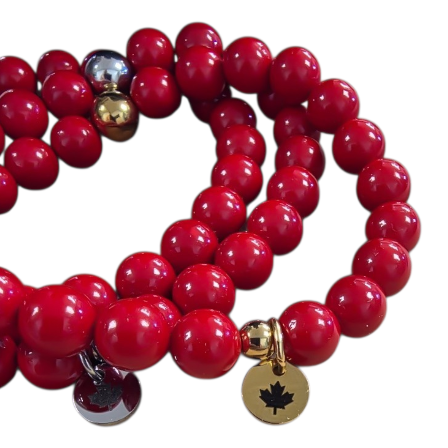 ***Please choose your metal from the drop down menu below*** A meaningful Canadian-made piece with a bold, proud twist 🇨🇦These bracelets feature luxe South Sea red shell pearls paired with...