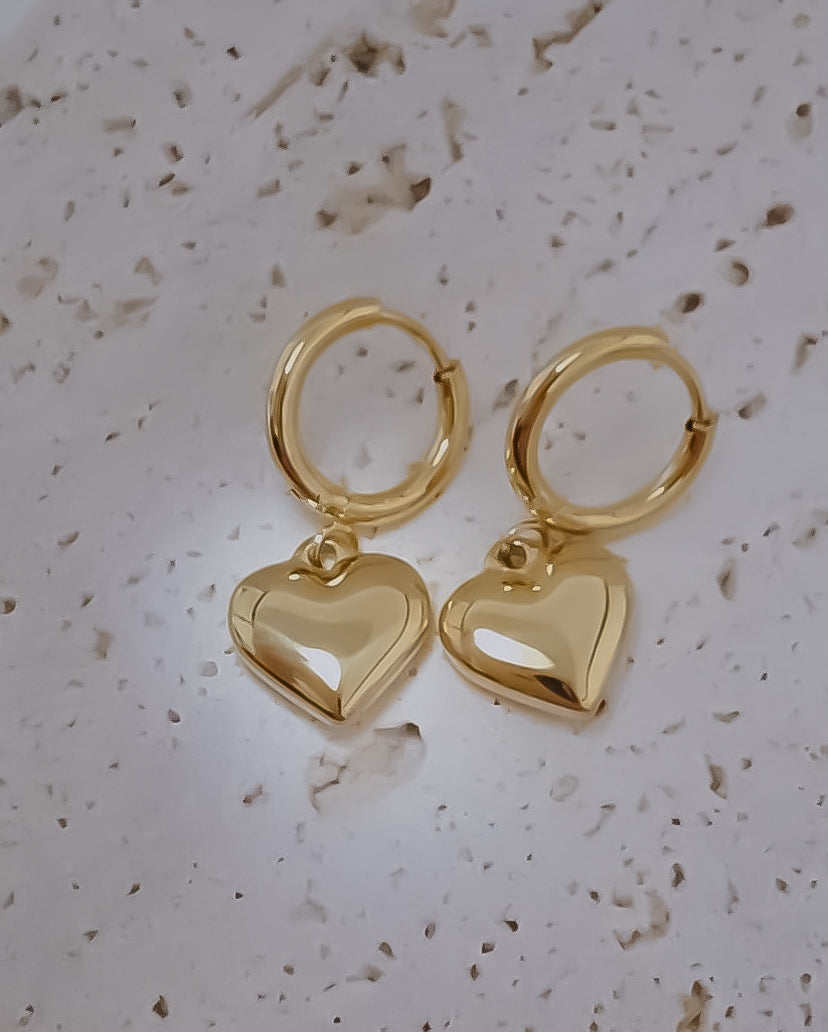 Ā Measurement: 16mm hoopĀ Dotted Puff heart charms: 16mm x 12mmĀ Materials:Ā Stainless Steel + 18k Gold PVD Plate We are SO excited to bring this new technology of plating to you!...